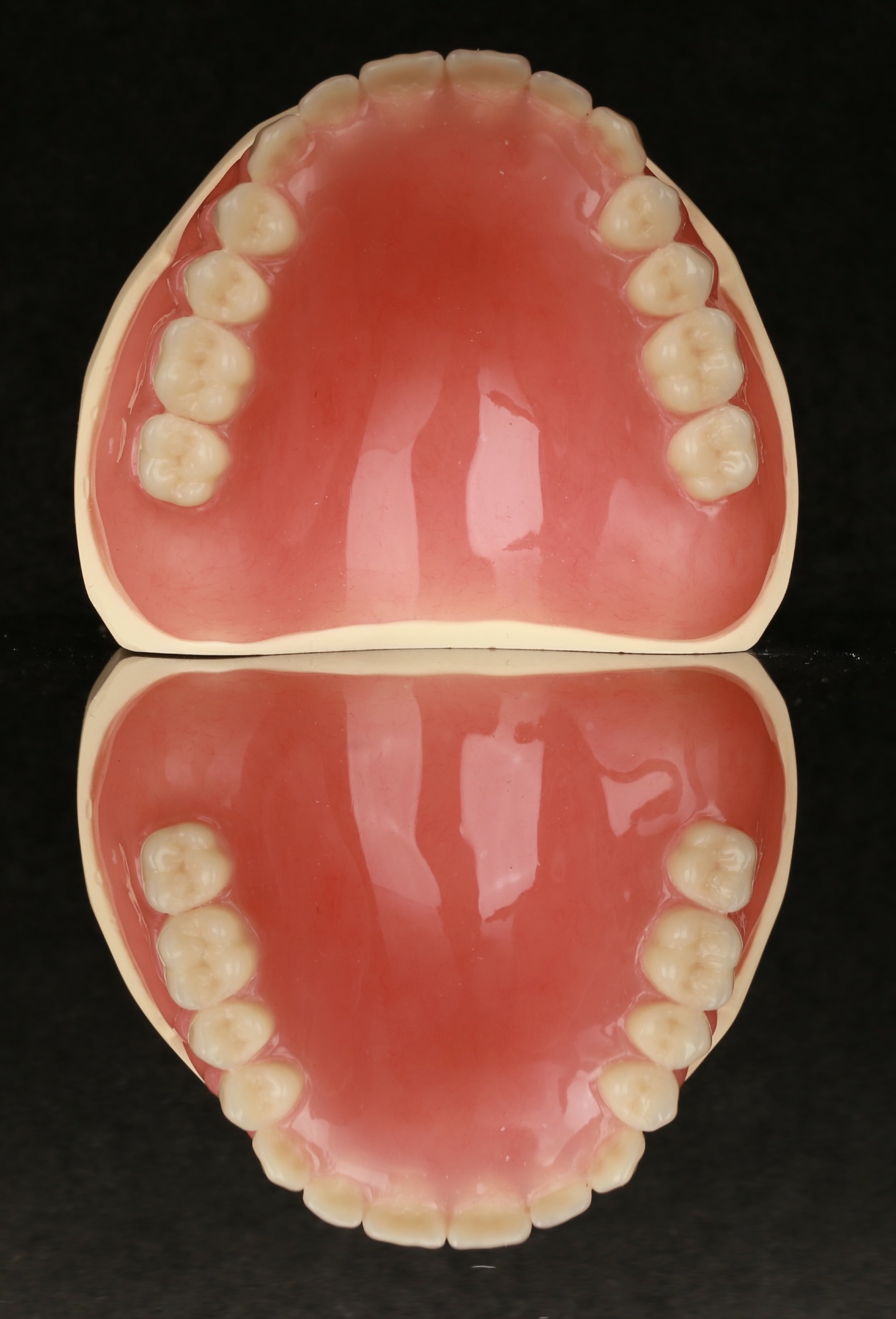 Notre prothèse complète est réalisée avec une grande précision, offrant un alignement dentaire naturel et une teinte proche de la dentition naturelle. La gencive prothétique en résine rose, aux nuances réalistes, assure à la fois esthétique, confort et stabilité occlusale, répondant aux exigences d’une restauration complète à long terme.