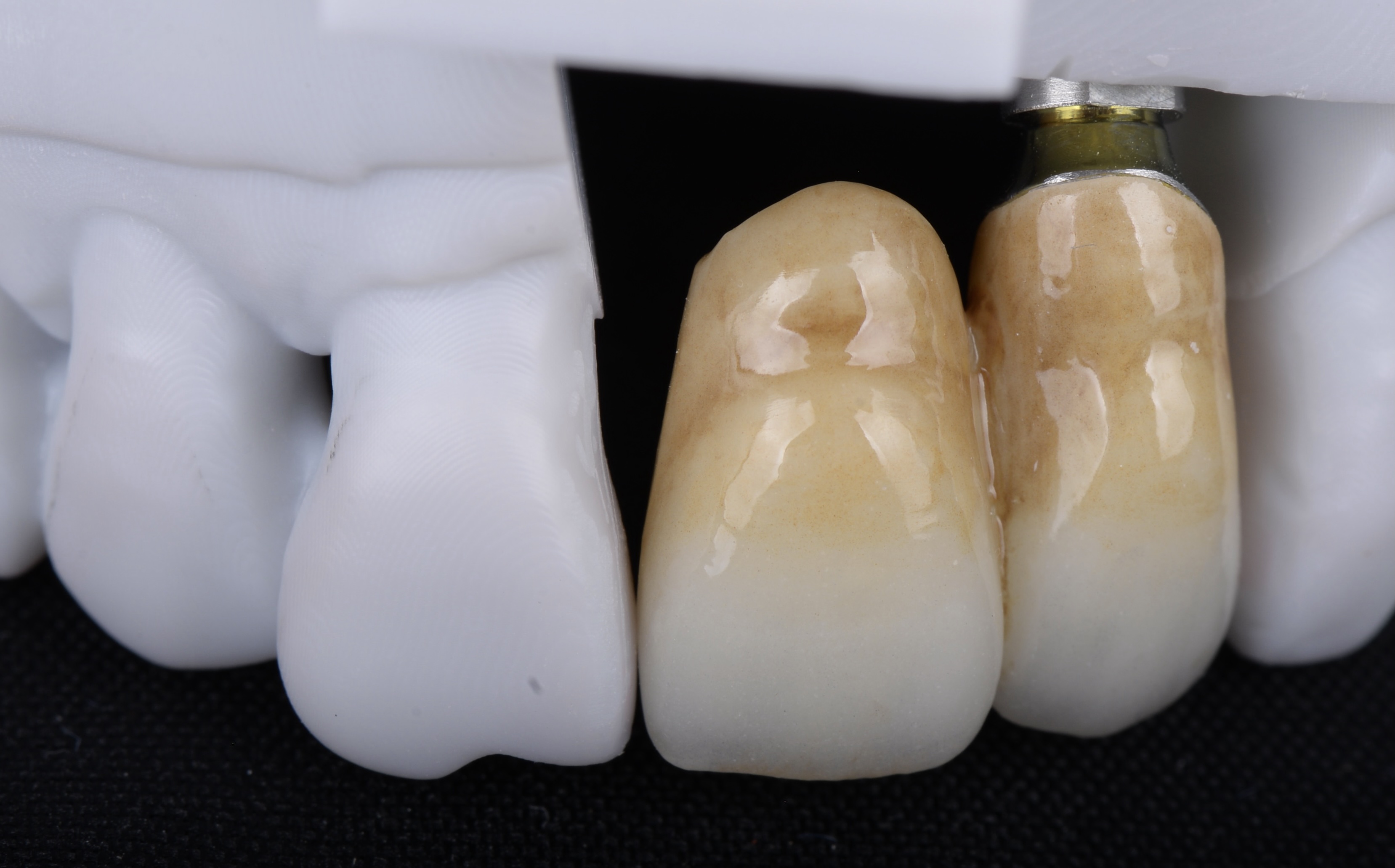 Nos restaurations implantaires scellées sont conçues pour allier esthétique, rétention et stabilité à long terme. Grâce à un ajustement précis pilier–prothèse et à un protocole de scellement fiable, elles assurent une excellente adaptation marginale et une répartition optimale des contraintes, réduisant le risque de micro- infiltration. Elles sont indiquées pour les restaurations implantaires exigeant un haut niveau d’esthétique et de fiabilité à long terme.