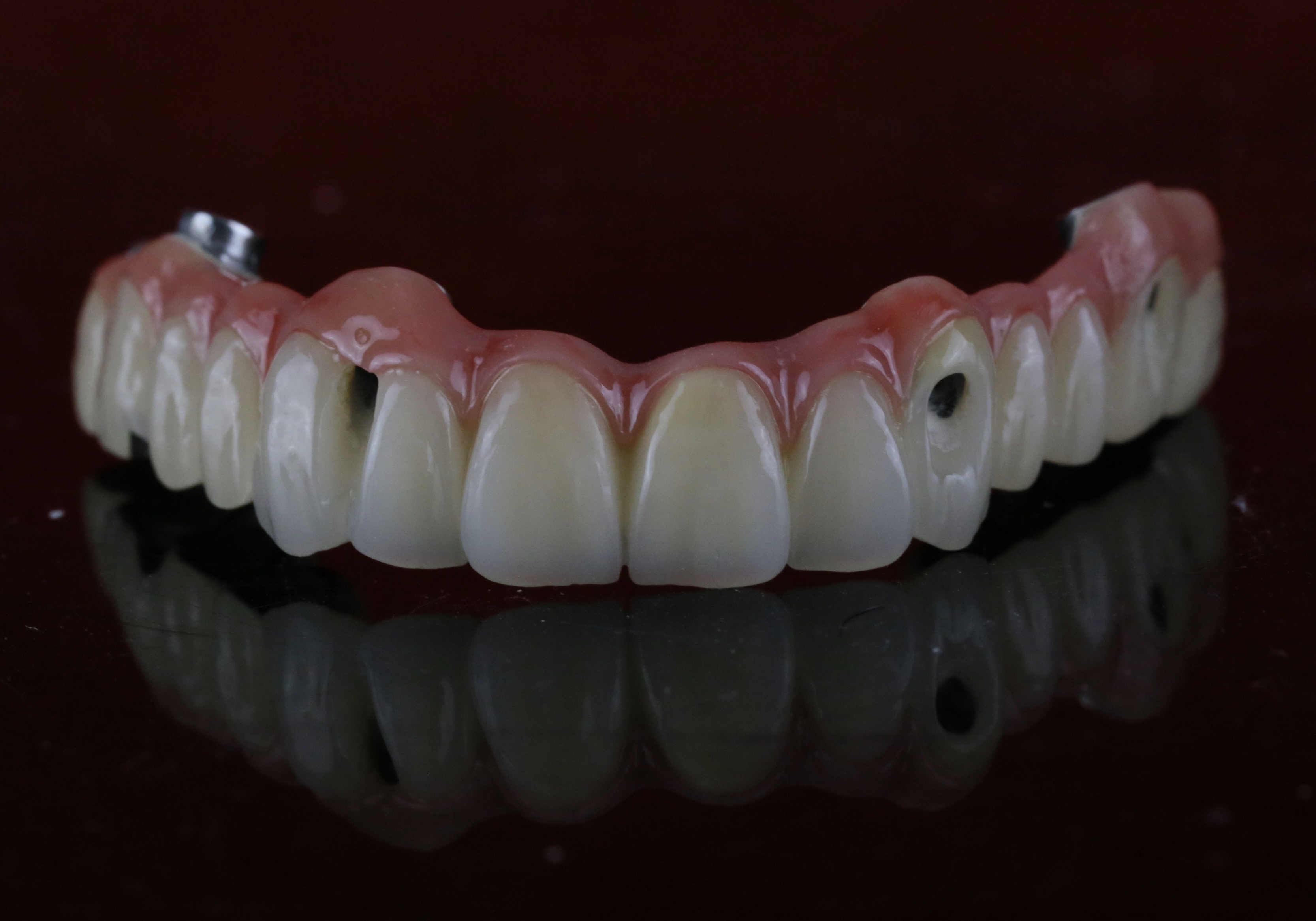 Notre solution All-on-6 repose sur une prothèse fixée complète soutenue par six implants, offrant une solution durable et fiable pour les patients édentés totaux ou partiels. L’occlusion est stable, l’alignement dentaire naturel, et la gencive prothétique en résine rose ou céramique assure une intégration esthétique tout en garantissant fonctionnalité et stabilité clinique à long terme.